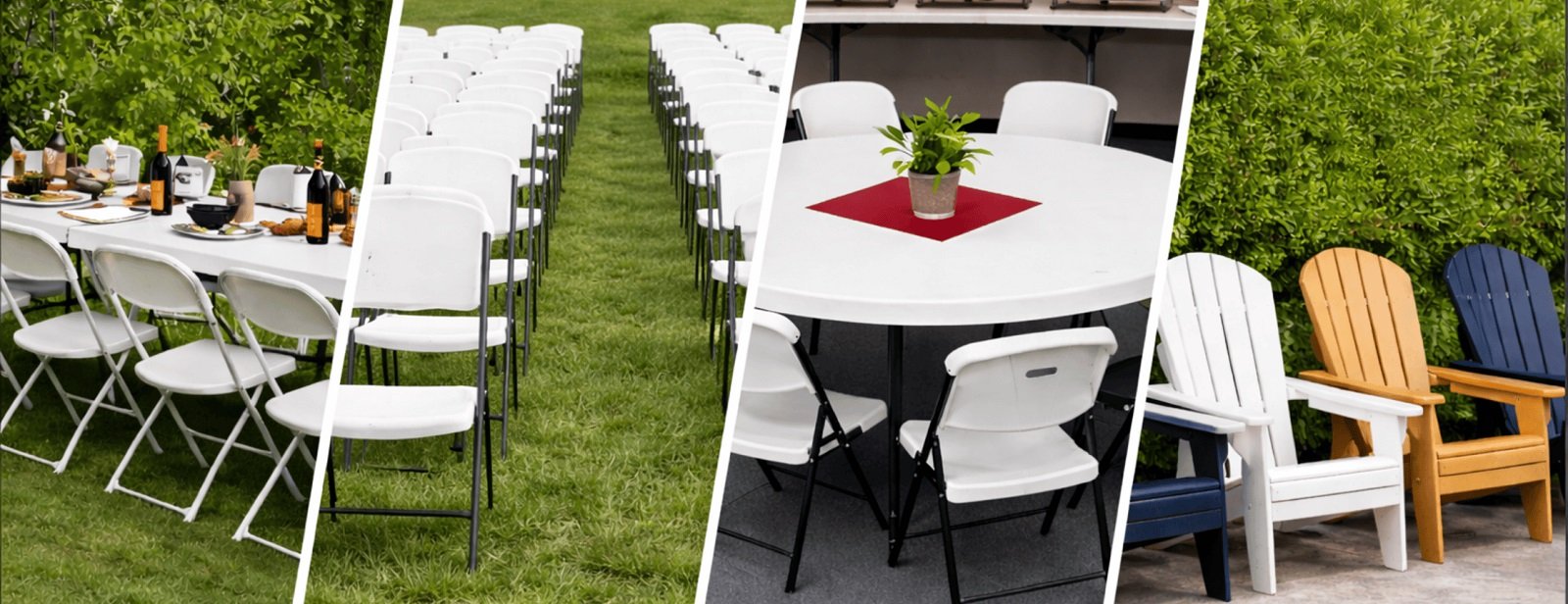 Chair rentals in Owatonna are commonly used for school programs, ceremonies, and church services. Folding chairs provide uniform seating, while Adirondack chairs are suitable for outdoor settings.